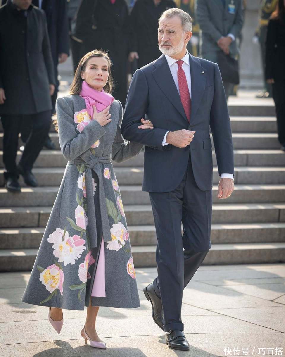 国色天香的灰色牡丹印花大衣上身,既有中式特色又能保留她原本的穿衣风格,视觉上非常洋气,不过话又说回来,莱蒂齐亚王后可能预估错了我们这的温度,冬天直接选择露脚踝搭低口鞋,勇气可嘉。