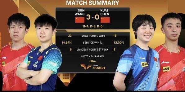王楚钦/孙颖莎3比0降服队友陈垣宇/蒯曼