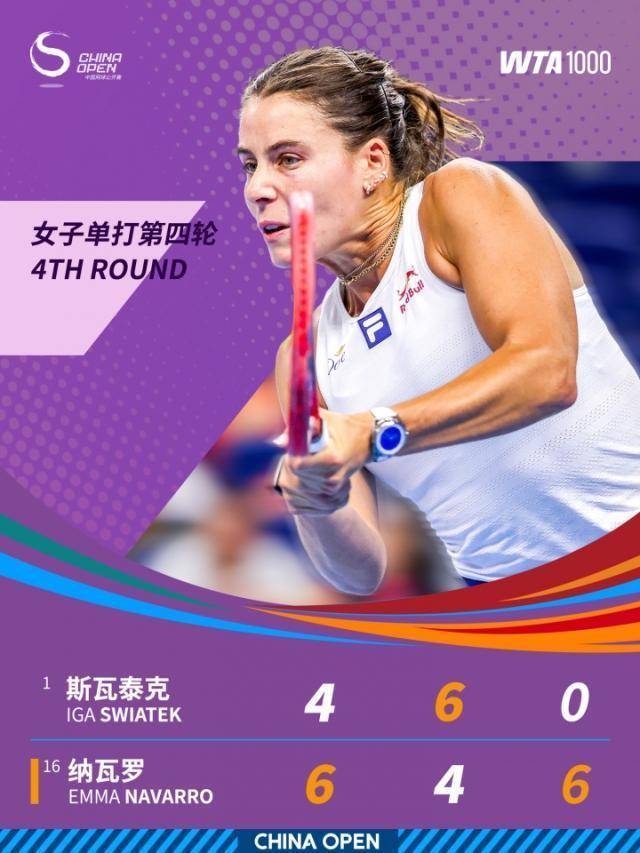 中网女单第四轮,16号种子纳瓦罗决胜盘送蛋,以6比4、4比6、6比0挑落头号种子、前赛会冠军斯瓦泰克,办事生活第三次打败寰球前二,这亦然她第三次置身1000赛八强。